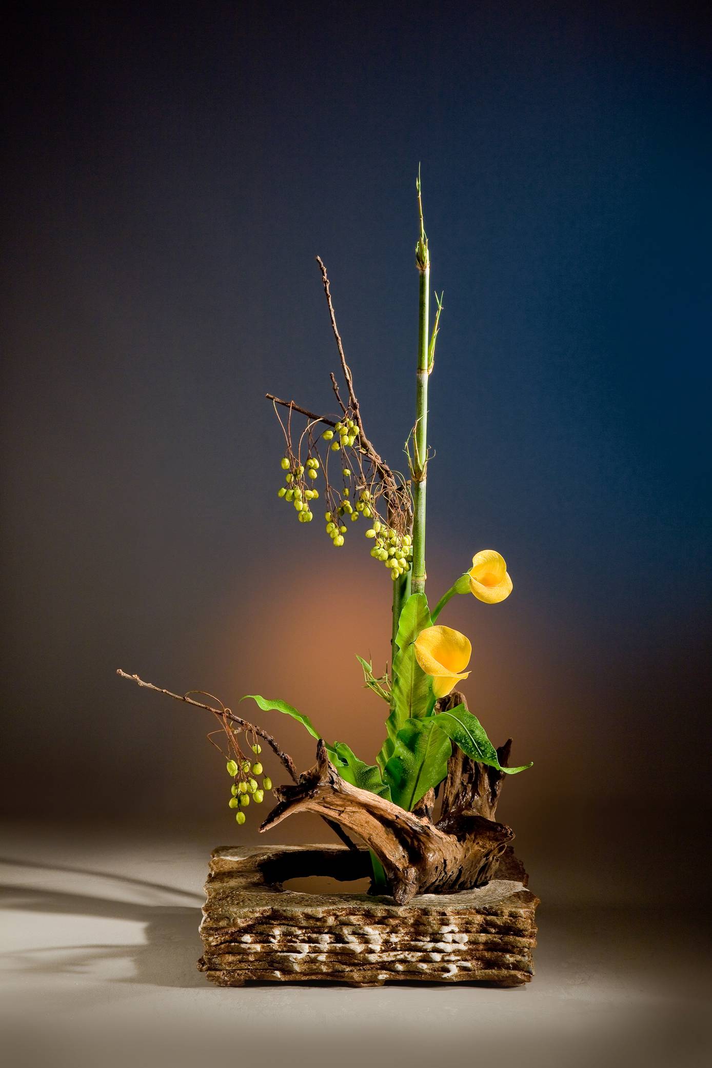 花材:竹、苦楝子、海芋、山蘇、枯木