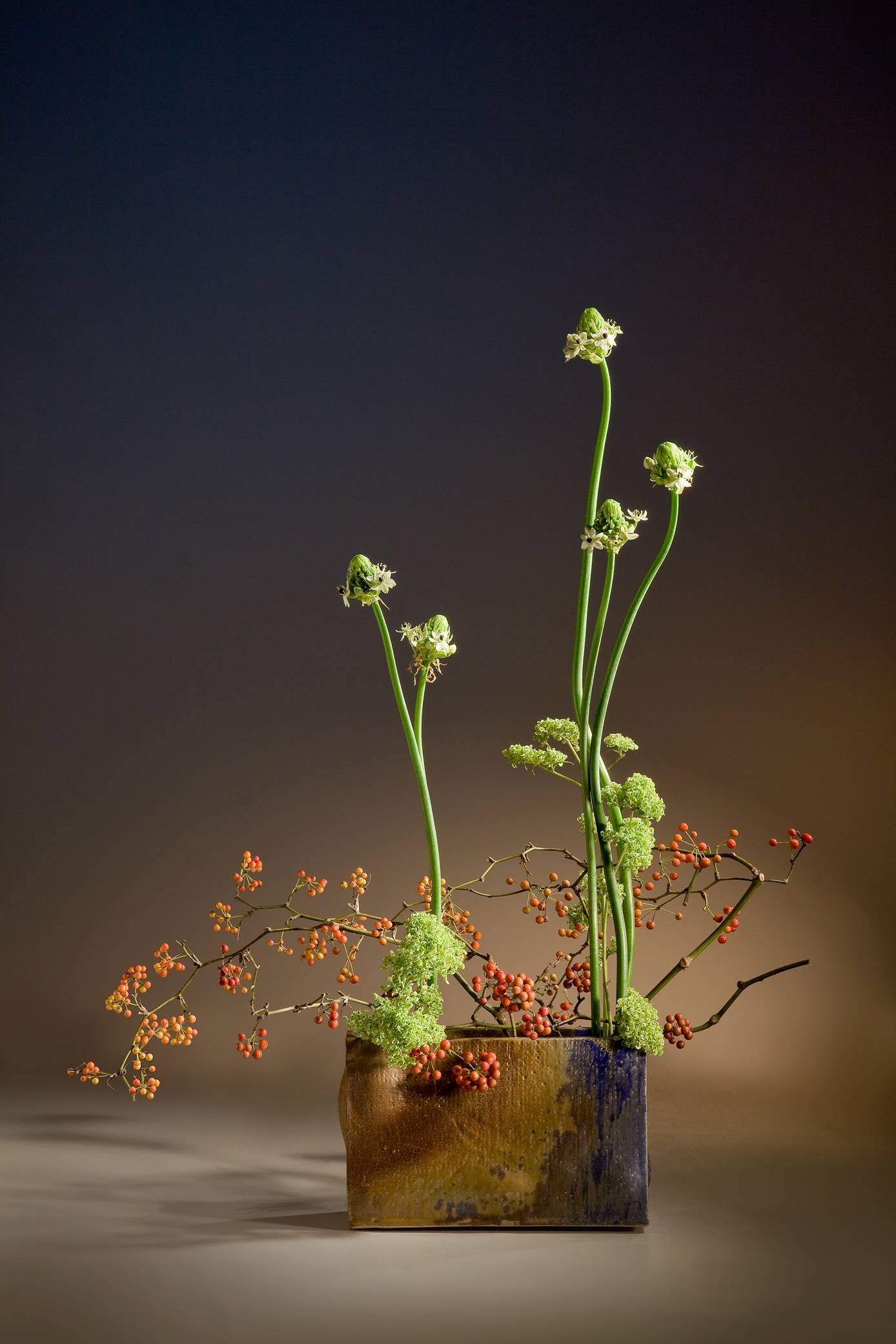 柏、桔梗、電信葉,以至於花器─彩瓷缸,均來自於大地之養,
