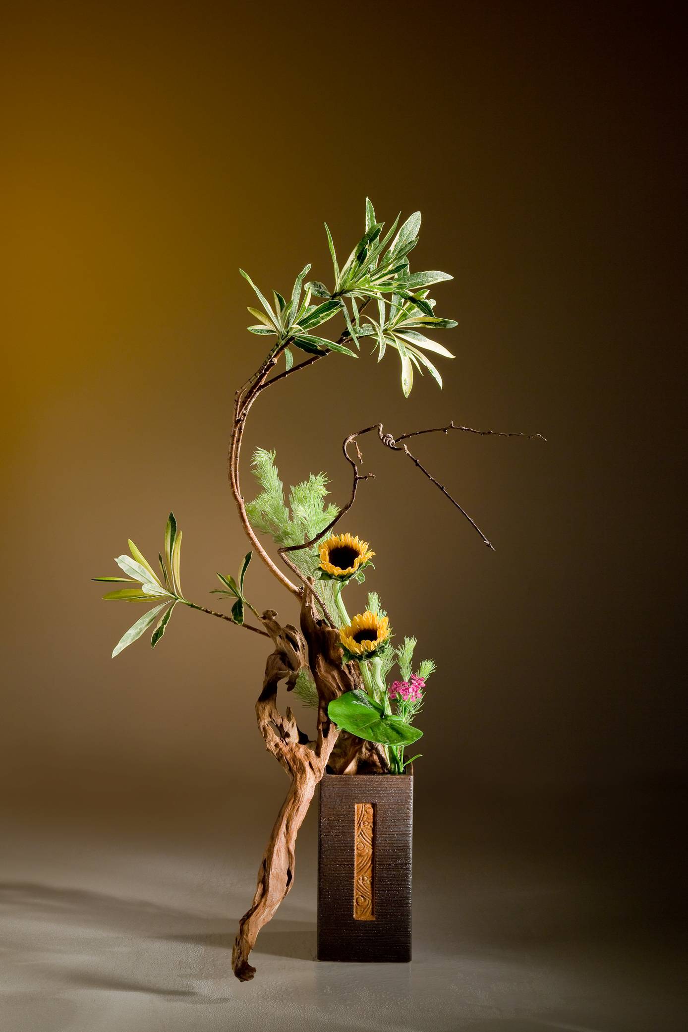 花材:夾竹桃、向日葵、電信蘭、深山櫻、枯木