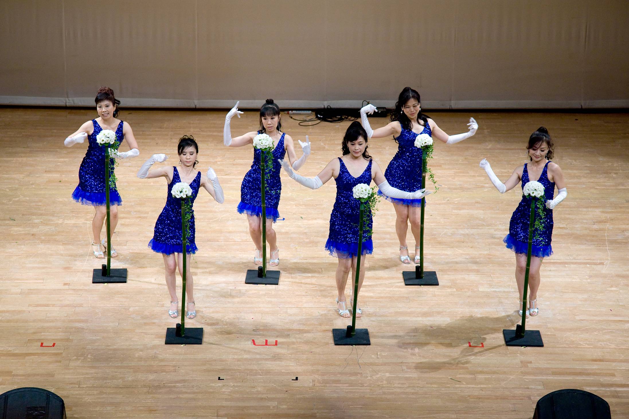 本會王愛珠老師與她教室的學員也表演了現代舞。閃亮寶藍色短短的舞衣,顯出六位老師的好身材,腳蹬金色舞鞋,跳起時下流行的Nobody舞,舉手投足間充滿了青春活力,超high的!指導老師是葉素真老師。唇音樂表演很特殊,由李貞吉教授和他剛由美國回台的公子一起表演,李教授是警察大學的學務長,他的唇音樂曾在總統府音樂會及世界各國巡迴演出,今天表演了「歌劇魅影」、「揚鞭催馬運糧忙」,讓台下的聽眾癡迷沉醉。