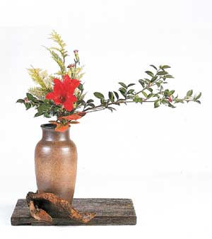 花材: 茶花、楠柏、孤挺花、變色葉、枯木、石竹。