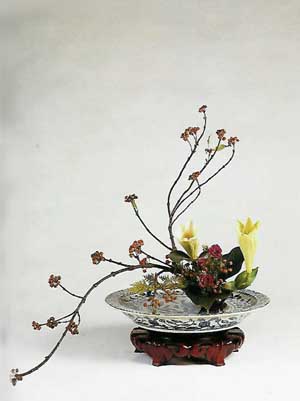 成熟的自信,藉由優雅脫俗的百合,展現在作品主軸之中;一種青春的靈動,猶如黑藤仔倒掛斜出的線條,帶點不經意的冒險轉 折,試探著從熟悉迎向陌生。本作品希望表達;一個成熟的女人,回顧昔日的青春情懷,乍然發現那種難以言喻,一份充滿好奇嚮往冒險的微妙天性,已然融入生命當中,成為避免僵化的追求意志。