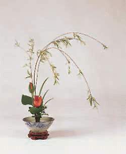 花材:垂柳、睡蓮、深山櫻、著莪、寶石葉