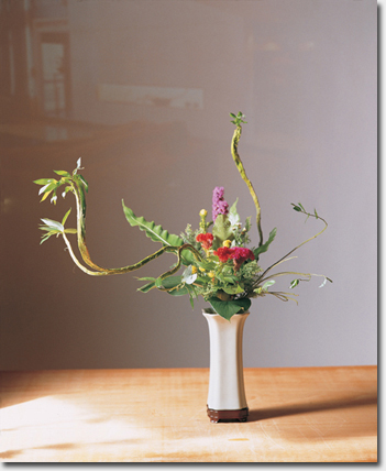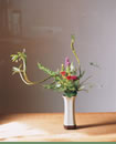 花材:石化柳、繡線、 山蘇、雞冠花、 玲瓏花、日光柏、 寶石葉 花器:瓷瓶 花型:造型理念花 「草木賁華,無待錦匠之奇」《文心雕龍》 《易經》(乾卦文言)中提到宇宙自然的演化,便在彰顯「美」,宇宙自美,花藝家取花卉素材自然之形、色,於瓶中再現風華,擺置廳堂之花,家人、賓客共賞,似託身心於宇宙中。